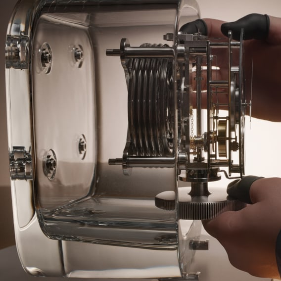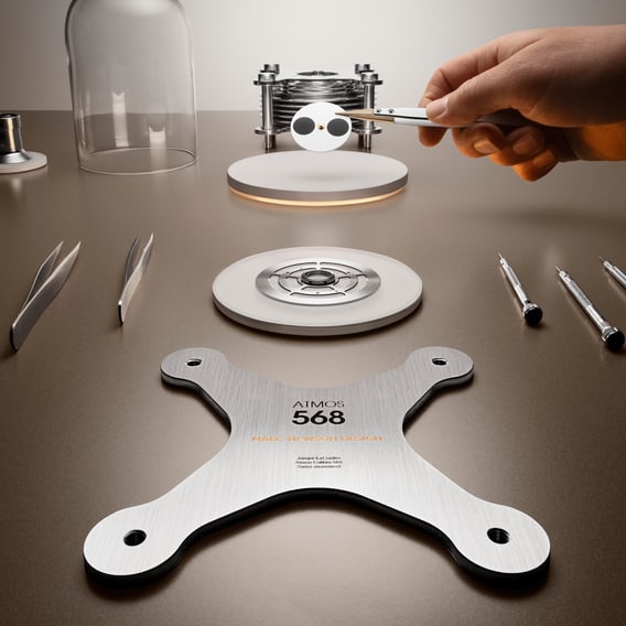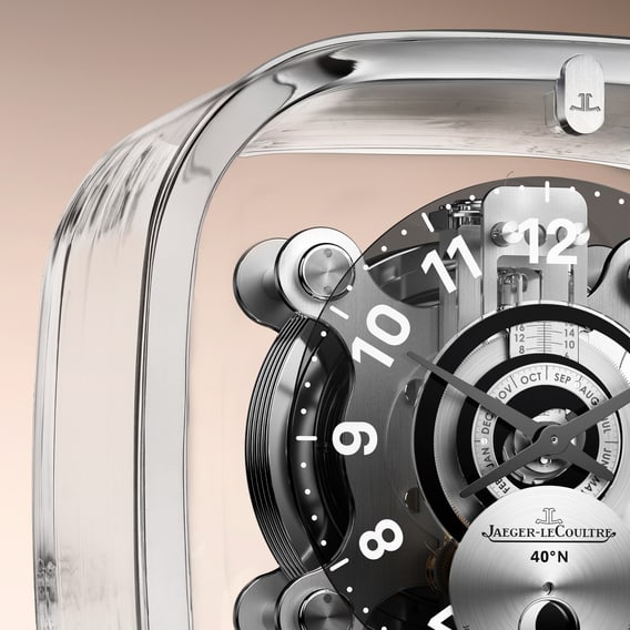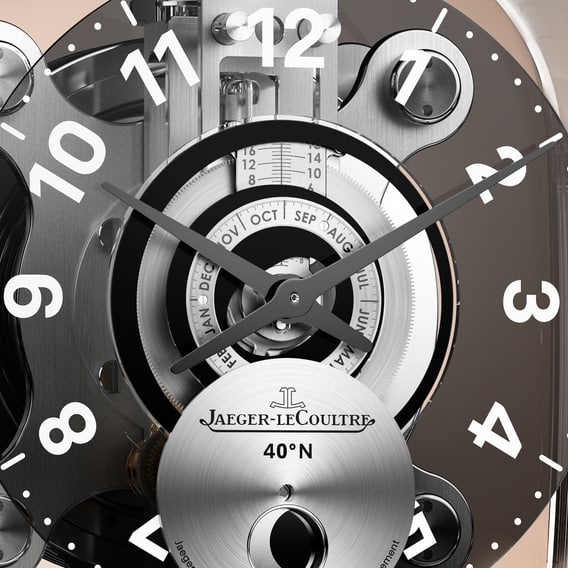 积家568型机芯由马克·纽森设计,轻盈通透,并搭载高级制表复杂功能。携手积家工艺大师共同研发,采用工艺复杂的巴卡拉水晶罩,搭载多项复杂功能:单色日出日落显示、时间等式显示,以及每4087年仅一日偏差的月相显示。与所有Atmos空气钟的机芯一样,积家568型机芯无需人为干预就亦可持续精准运行。