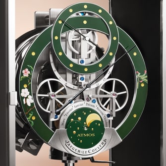 空气钟采用工程师让·莱昂·路特(Jean-Léon Reutter)于 1928 年创造的革命性的机械装置,并由积家于二十世纪三十年代推向市场。其精妙的设计自问世之后不断推陈出新,跻身积家标志性杰作之列。Atmos空气钟也被称为“总统时钟”,瑞士联邦政府将其作为官方礼物。