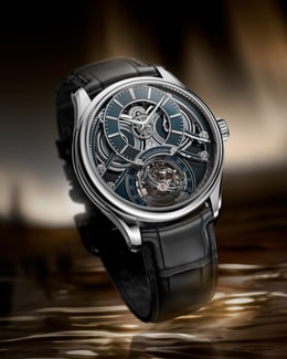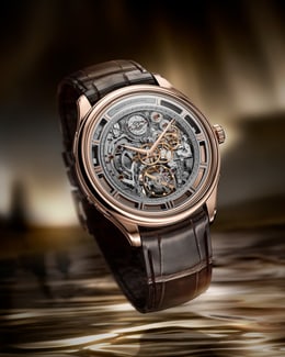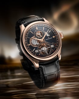 此款大型复杂功能腕表证实,卓越的技术性能,内敛含蓄的美感和超凡卓越的复杂功能可融于一身。积家特别推出一系列Duomètre Sphérotourbillon双翼立体双轴陀飞轮腕表尊享款,包括精美的玫瑰金表壳款及璀璨的镶钻款。