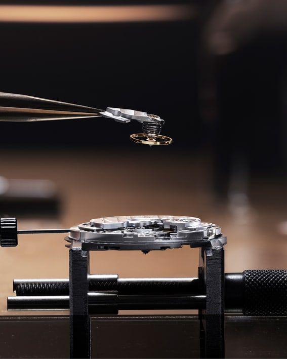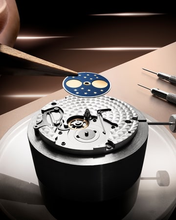万年历机芯采用超薄结构,星期、日期、月份和年份显示布局经典,于表盘上呈现井然有序的布局。每枚时计的齿轮、月相盘与推进杆均经手工调校,表桥施以倒角工艺润饰,缔造卓尔不群的复杂机芯。
