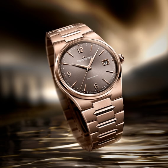 Master Control Chronometre Date大师系列天文台计时日历腕表适配不同腕围,采用38毫米表壳,并提供蓝灰色渐变太阳放射纹表盘与暖色古铜色表盘两种款式。表链采用三排式设计,灵感源自太子妃式指针和刻面镶贴时标的几何美学,抛光三角链节与垂直缎面拉丝表面交替呈现,佩戴舒适,于光影流转间尽显雅致格调。表圈融入抛光工艺,表壳侧边采用缎面拉丝工艺,为整体设计增添内敛精致的美感。