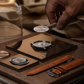 表背镌刻Master Control大师系列独有的“1000小时测试”徽标,象征腕表通过严苛检测,卓然出众。其设计灵感源自20世纪90年代原创印记设计,在延续经典美学的同时焕发全新风貌。镌刻此徽标代表时计通过了一整套积家专有的认证流程,其测试不仅包括对机芯进行装壳前后的检测,还会通过模拟腕表日常佩戴条件,对组装后的成品腕表进行全面测试。该认证自1992年推出以来,持续为时计精准计时树立精度与可靠性的全新标杆,亦随着技术革新不断完善。