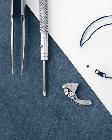 此枚机芯荟萃精美的高级制表装饰工艺,305枚零部件均经过悉心润饰,呈现十种不同装饰技艺,其中包含61处手工倒角。这十种装饰工艺由大工坊内部八间不同工作坊通力协作完成。