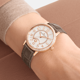 Rendez-Vous约会系列于2012年首次亮相,外观风格与复杂内芯相辅相成,作为开创性时计杰作载誉等身。纹理感玑镂饰纹、凸圆形时标、镶钻内圈、花体数字和指针——繁复精致的表盘装饰搭配精美日夜显示复杂功能,更显迷人魅力。融合高级珠宝工艺与高级制表复杂功能,匠心诠释璀璨优雅与机械美感。