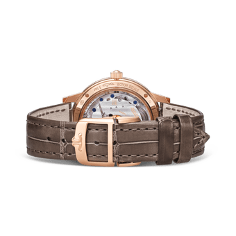 积家898型自动上链机芯在大工坊内部完成从设计、制作、装饰到组装全流程工序,搭载日夜显示复杂功能,于表盘呈现48小时慢速动画。动力储存长达70小时。
