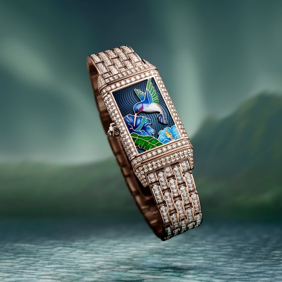 本系列每一枚时计匠心融合高级制表与高级珠宝的精湛技艺,并由积家珍稀工艺工作坊(Métiers Rares™ atelier)制表师精心装饰,共限量发行20枚。大工坊以大明火内填珐琅工艺,匠心打造出栩栩如生的鲜艳木槿花、娇嫩枝叶与优雅大喙雀。表壳与表链融入复杂的雪花镶嵌工艺,见证卓尔不群的精湛技艺。