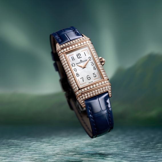 Reverso One翻转系列腕表以标志性的矩形翻转表壳、精致的装饰艺术风格边框与珍稀材质,成为永无止境的艺术画布。珍珠母贝表盘温润细腻,镶钻表冠平添一抹经典璀璨,魅力非凡。
