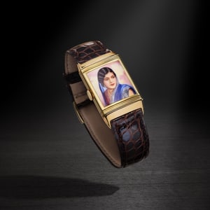 翻转表背的空白金属面,最初仅作为保护表盘的纯功能性设计;如今却成为运用漆面、镌刻、珐琅或珠宝工艺,装饰字母组合、家族徽章或个人讯息,以进行个性化定制的理想空间。积家博物馆展陈着这一精湛技艺的典范时计作品,其中包括1936年推出的Reverso ‘Indian Beauty’ 翻转系列“印度佳丽”肖像珐琅釉彩腕表。