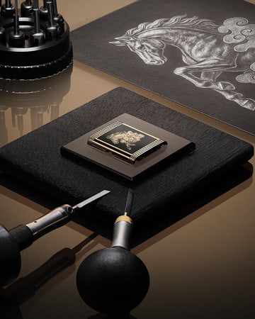 轻轻翻转表壳,在大明火亮黑珐琅背景之上,手工镌刻的灵蛇形象悄然映入眼帘,祥云环绕,雄浑有力。骏马身躯经过抛光润饰,栩栩如生的手绘铑黑色鬃毛与经磨砂处理的祥云纹理可巧妙捕捉并折射光线,光影流转间,更显灵动。
